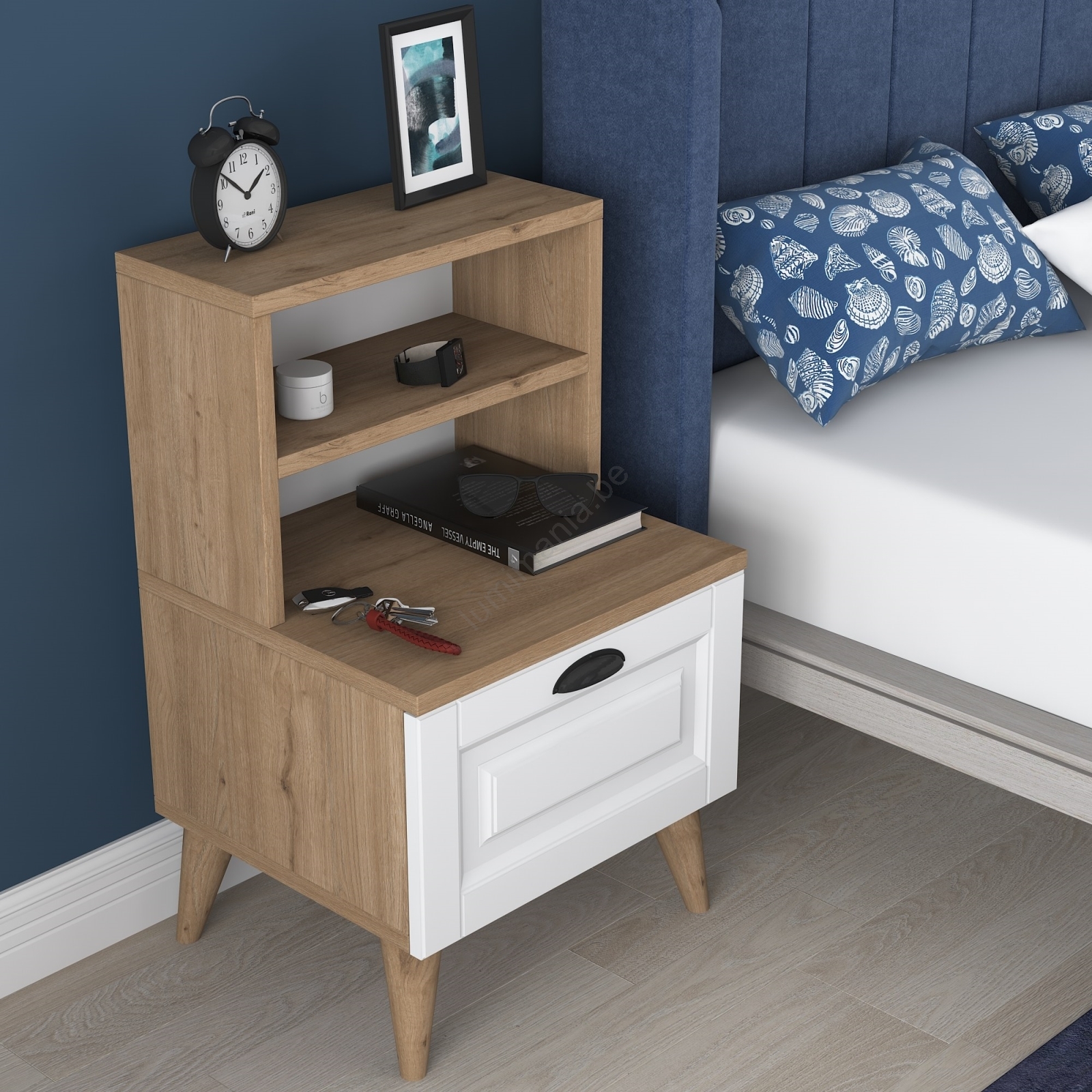 • Table de nuit avec étagères.
