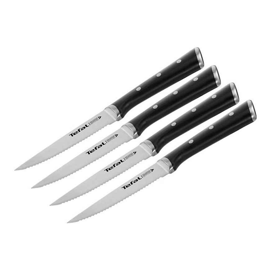 Tefal - Ensemble de 4 couteaux à steak ICE FORCE 11 cm en acier inoxydable, finition chrome brillant et poignées noires