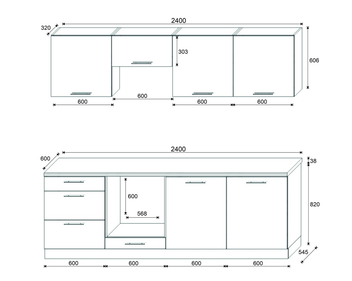 • Ensemble de cuisine CELESTE 240 cm, blanc laqué brillant