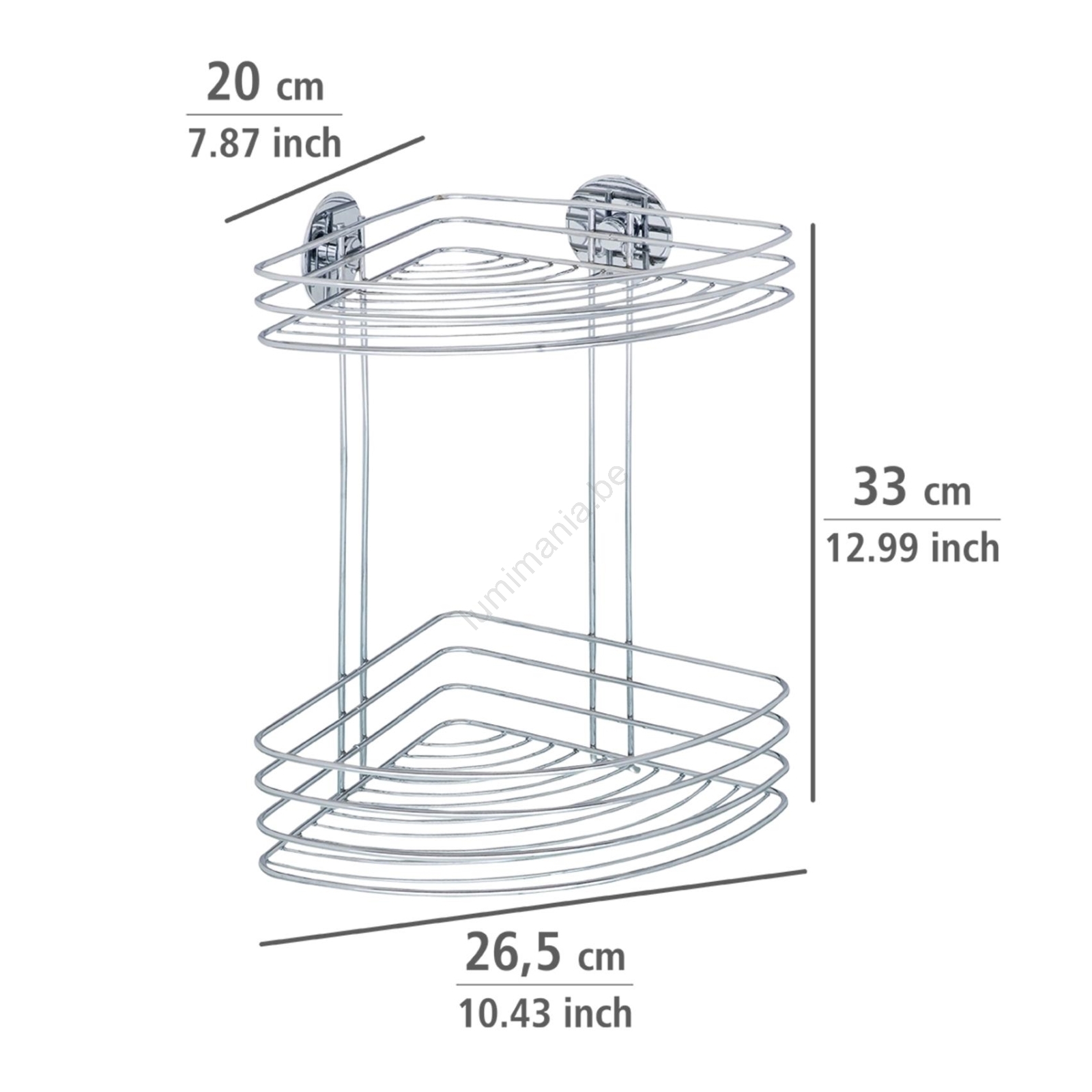 WENKO 18914100 - Étagère d'angle TURBO-LOC ronde en acier 26,5x33 cm chromée brillante