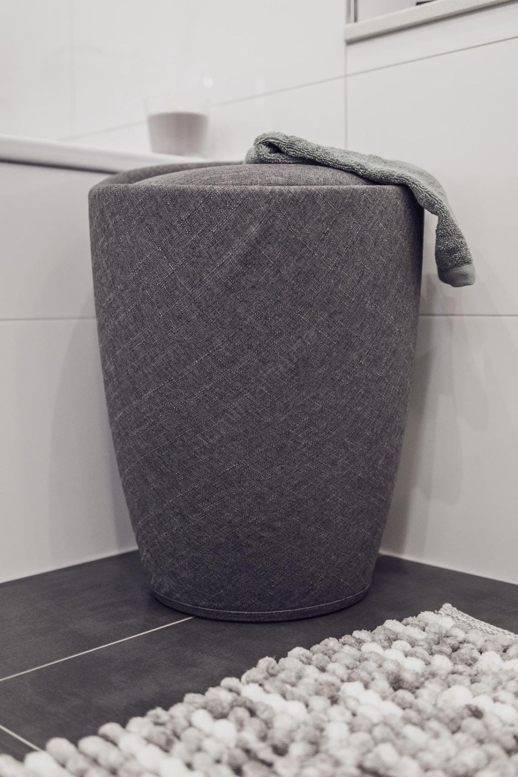• Tabouret de salle de bains pratique combiné à un panier à linge dissimulé.
