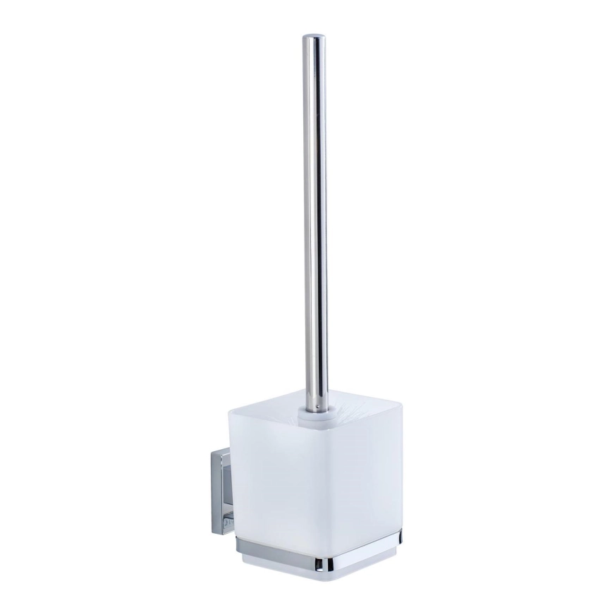 WENKO 22695100-WC Brosse WC VACUUM-LOC QUADRO ED 9,5x37 cm argentée/chrome brillant/transparente