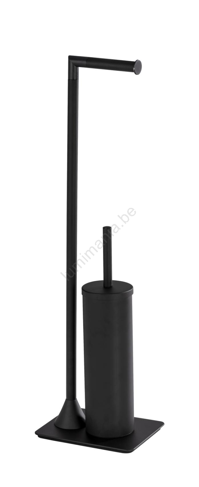 • Brosse WC autoportante au design élégant avec porte-rouleau de papier toilette.