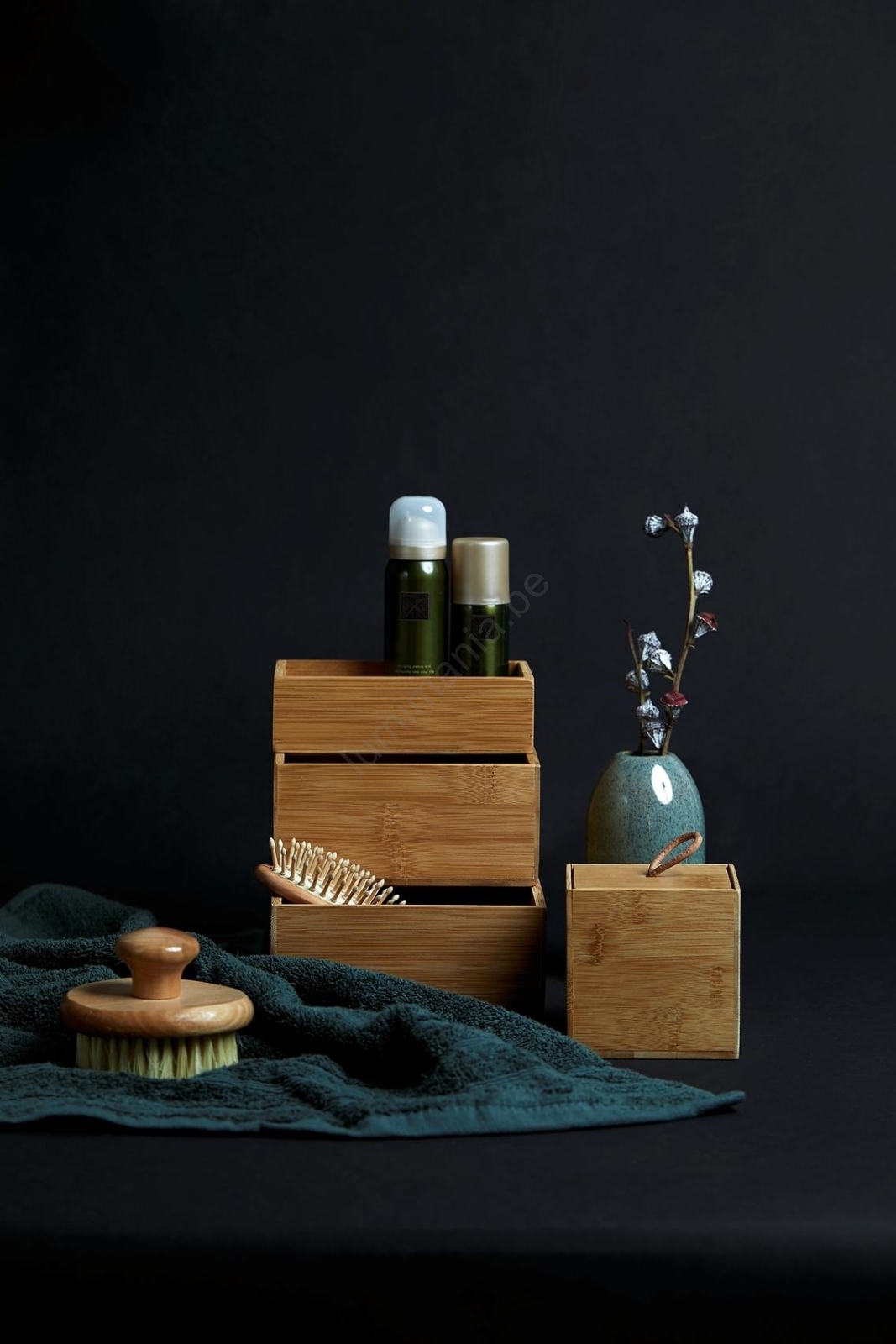 • Plateau en bambou élégant de la collection Terra pour accessoires de salle de bains.