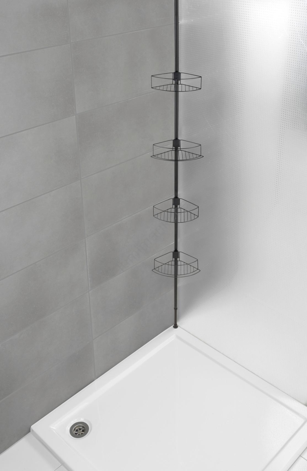 • Quatre paniers en fil métallique offrant suffisamment d'espace pour shampoings, gels douche et autres accessoires.