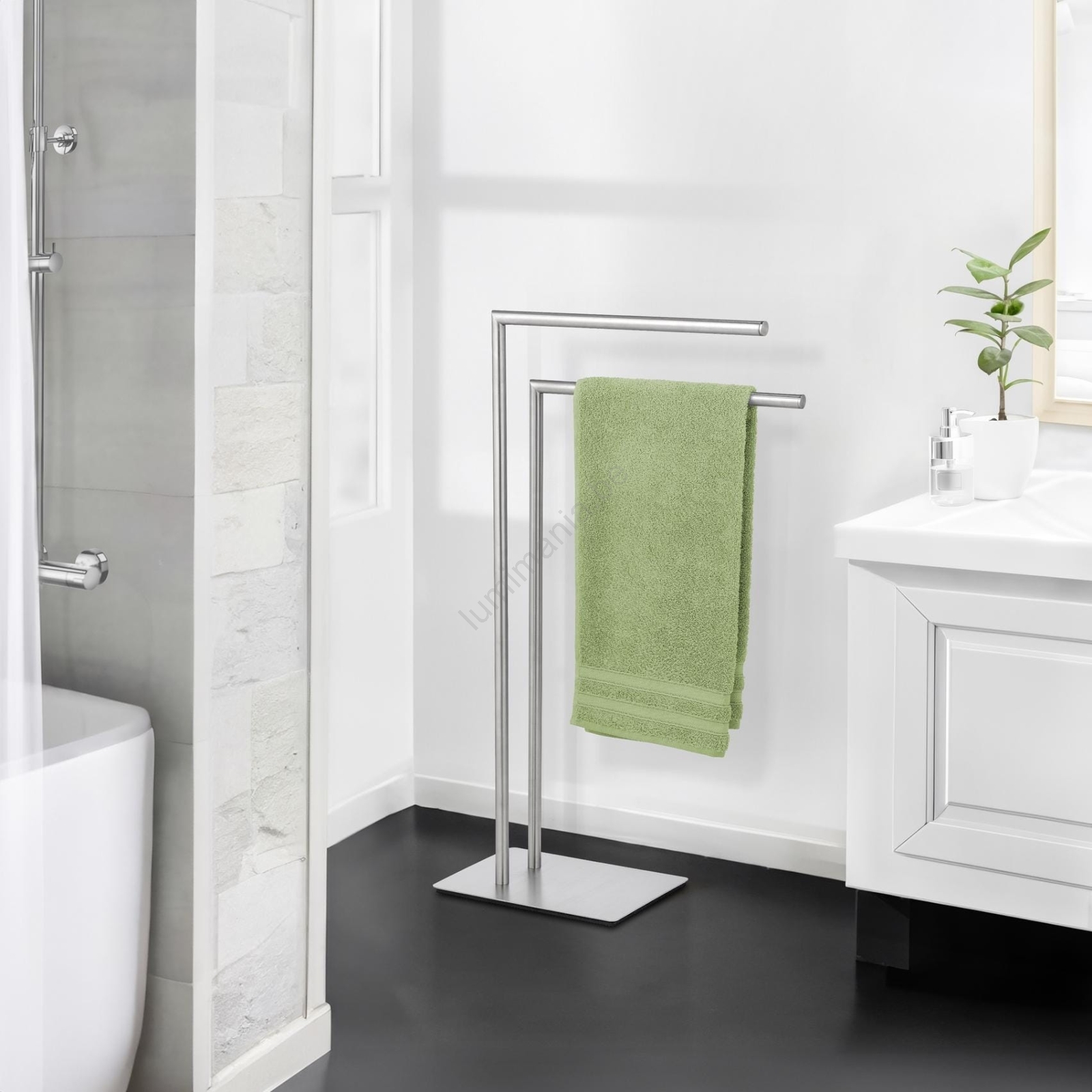 • Porte-serviettes autoportant élégant pour salle de bains et WC.