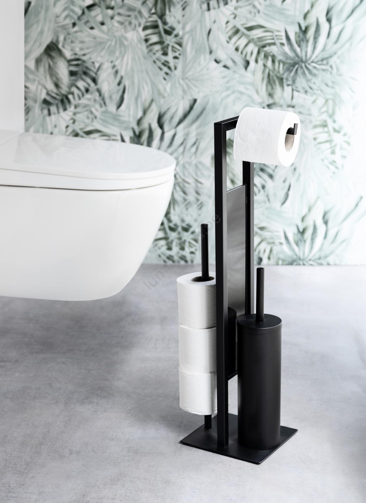 • Ensemble pratique 3 en 1 – brosse WC, porte-papier toilette et support pour rouleaux de rechange.