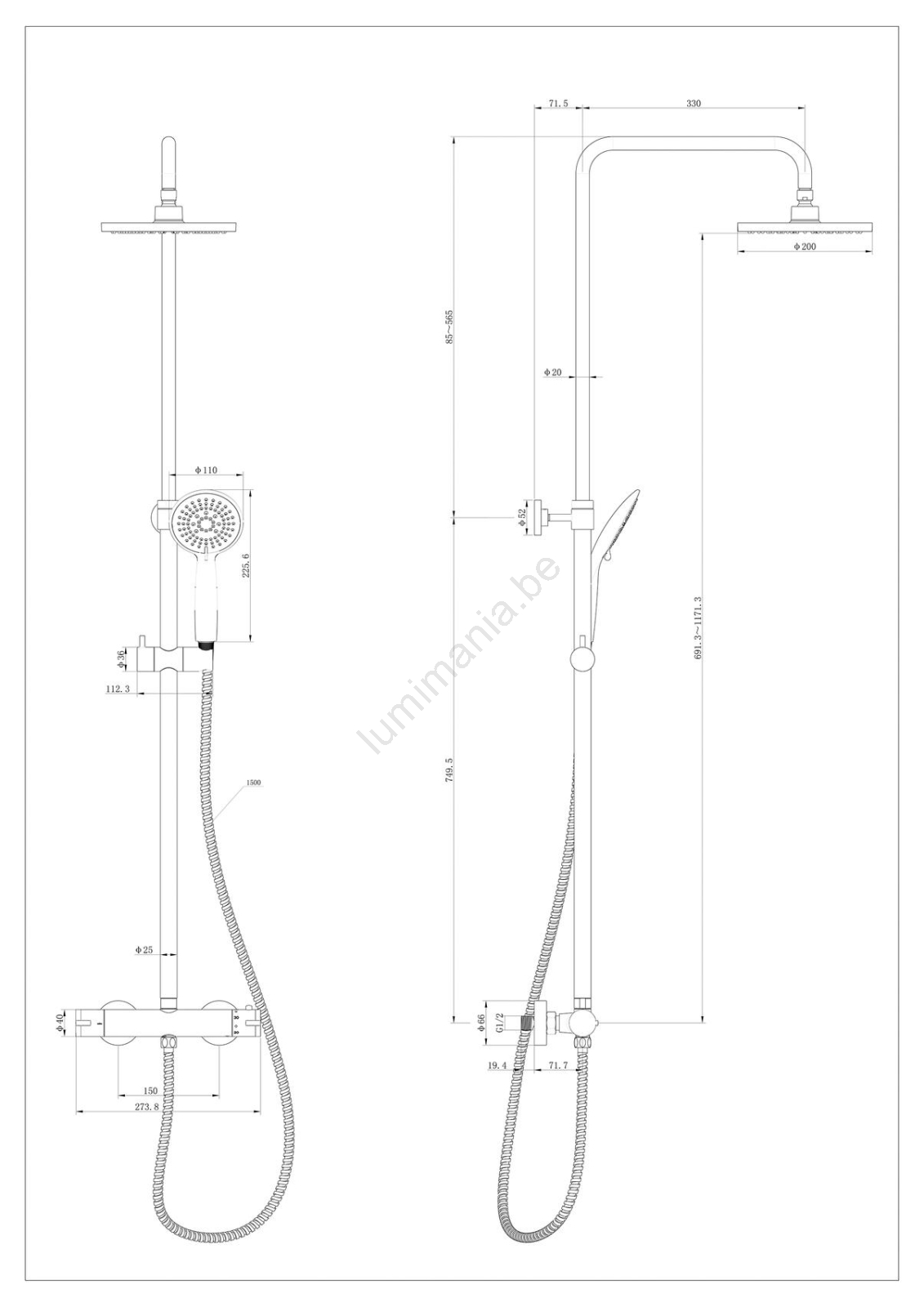 • Grande tête de douche Ø20 cm pour un agréable effet pluie.