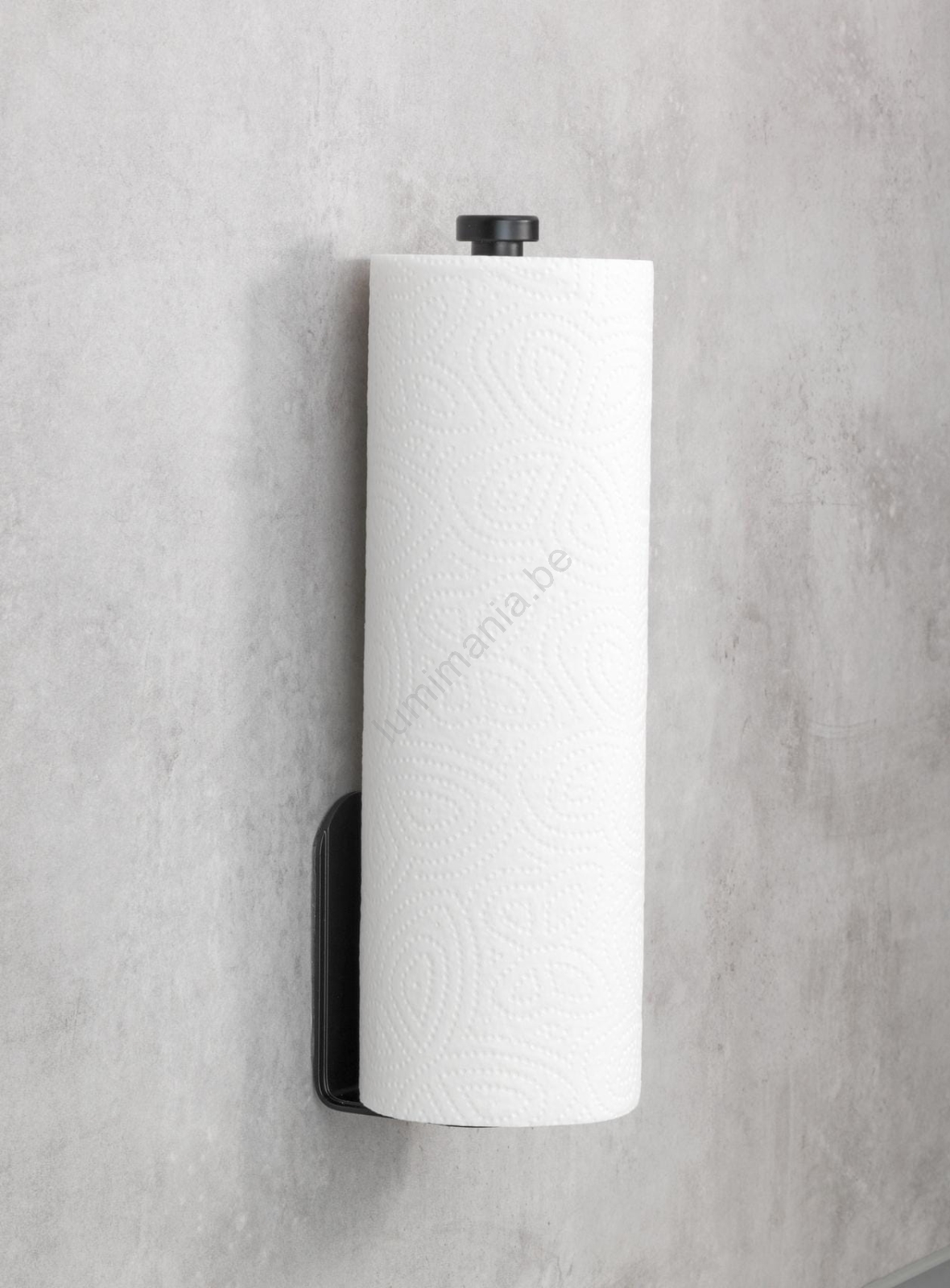 • Support moderne pour essuie-tout de cuisine, finition noire élégante.