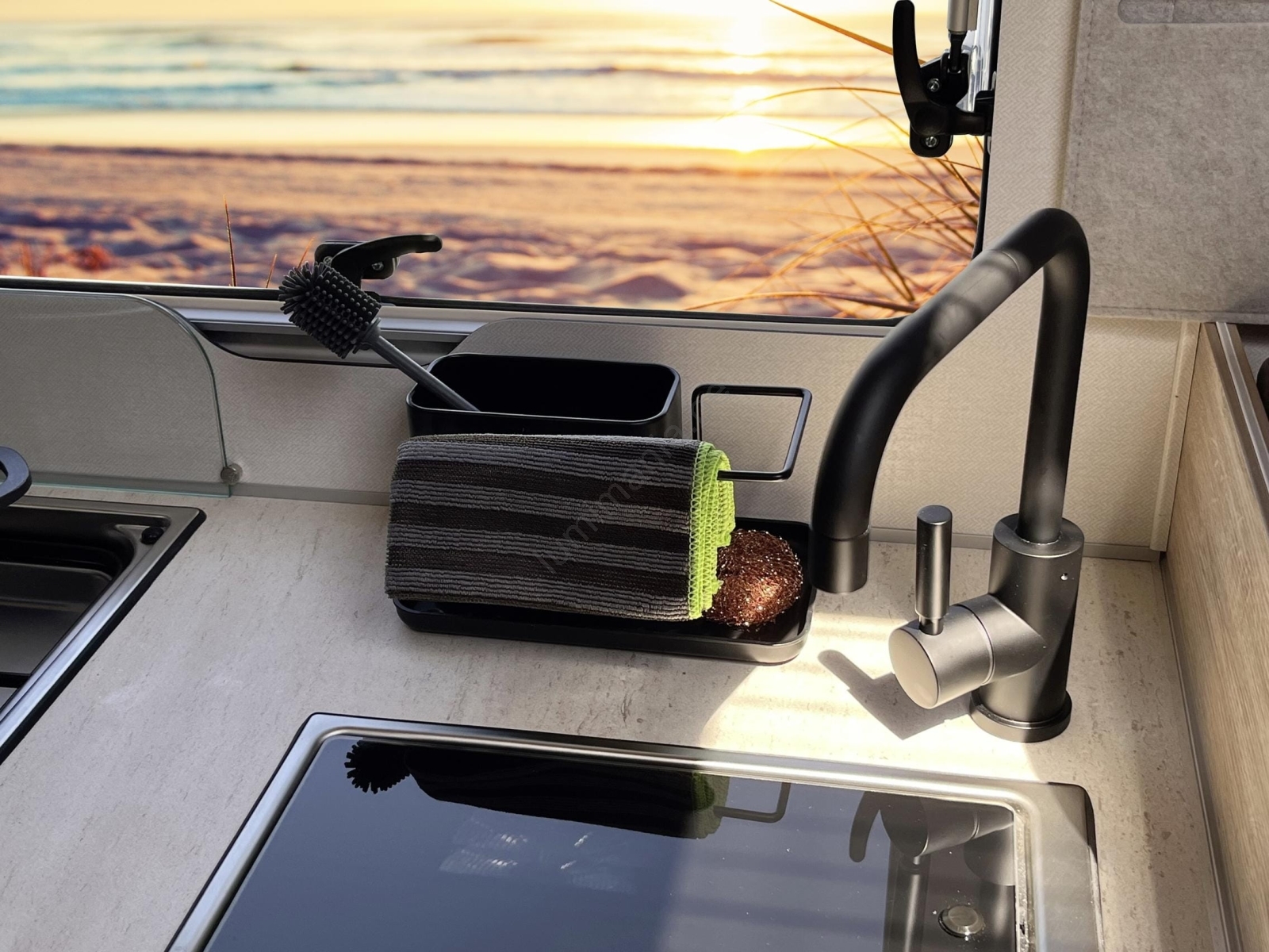 • Récipient amovible en acier inoxydable – idéal pour les éponges et les brosses.