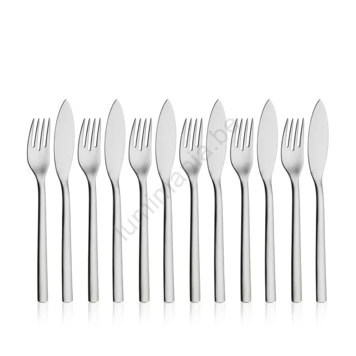 • Ensemble spécial de 12 couverts conçu pour le service du poisson – comprend 6 couteaux et 6 fourchettes.