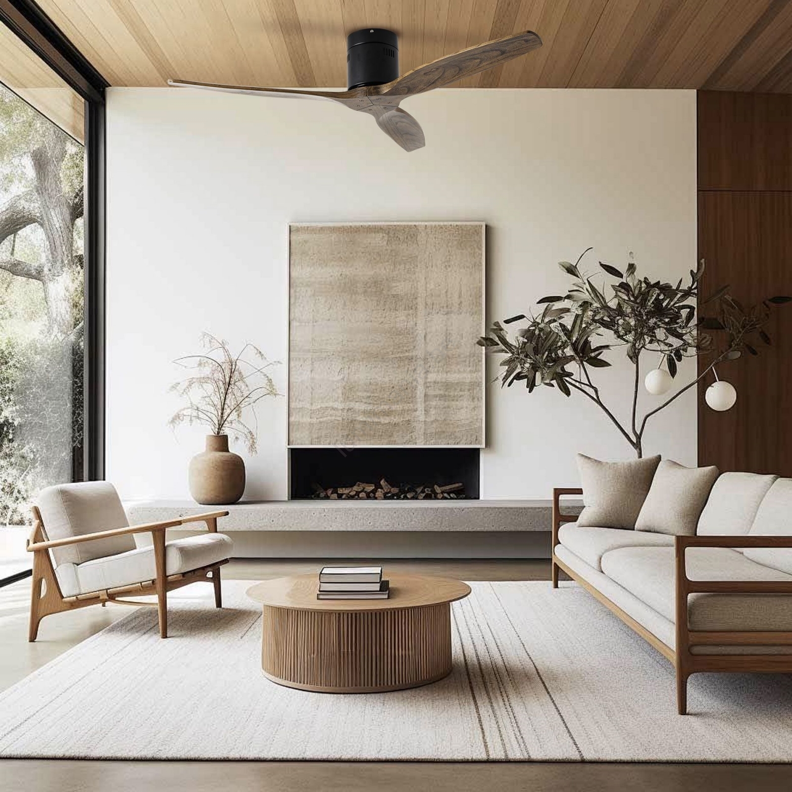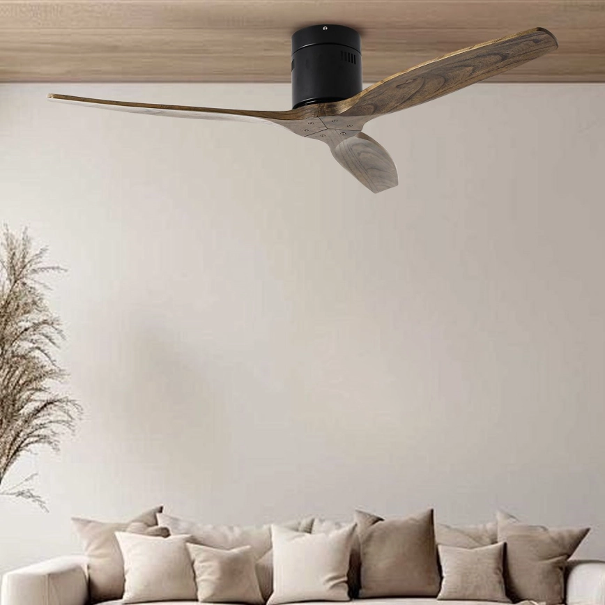 ZEVENTI - Ventilateur de plafond SPELLO Wi-Fi Tuya noir/chêne + télécommande