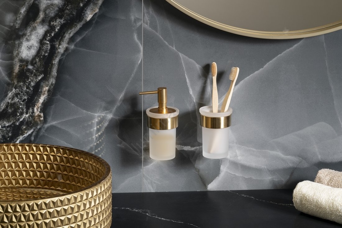 Gedy - Wandgemonteerde zeepdispenser PIRENEI 110 ml opaalglas/mat goud