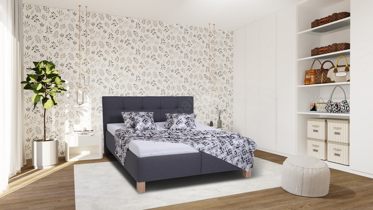 • Gestoffeerd bed met matras en opbergruimte MARIA 160x200 cm grijs