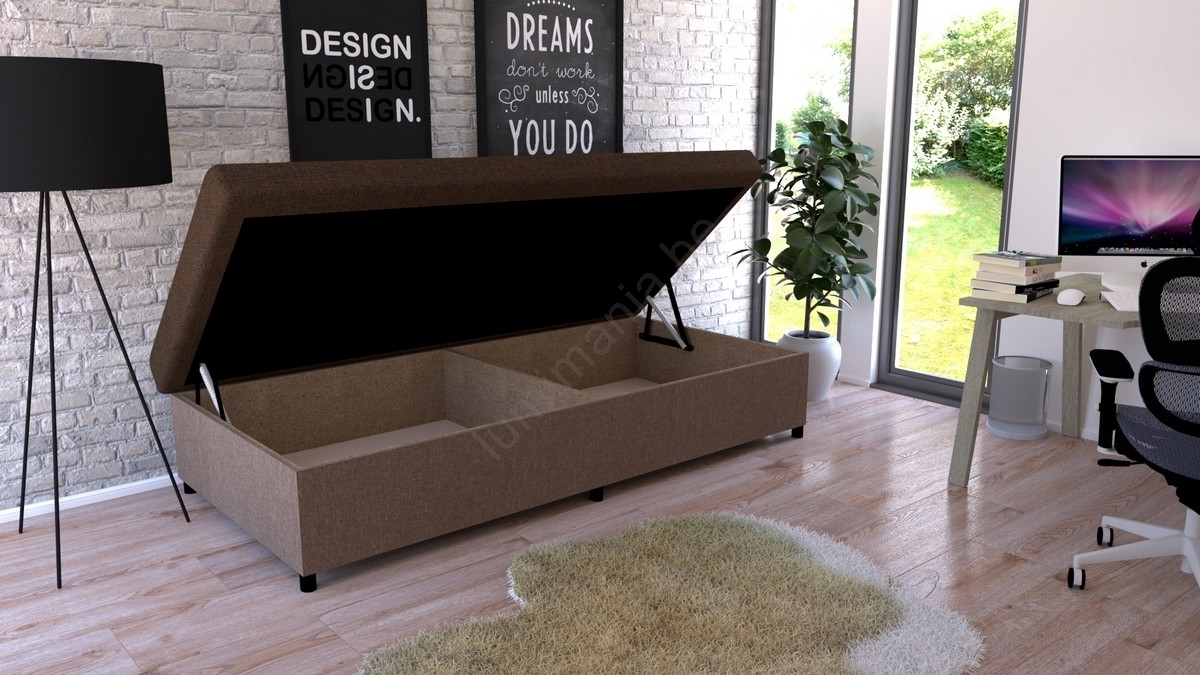 • Gestoffeerd eenpersoonsbed met opbergruimte CORY 80x200 bruin