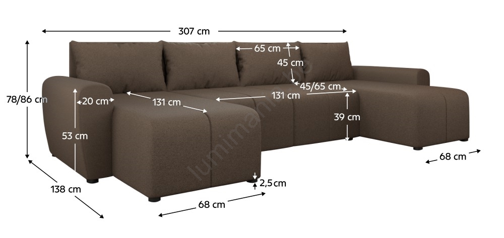 Gestoffeerde universele U-slaapbank NEWPORT, bruin