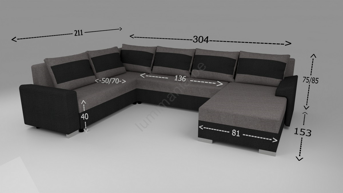 • Gestoffeerde universele U-vormige slaapbank OXFORD, zwart/grijs