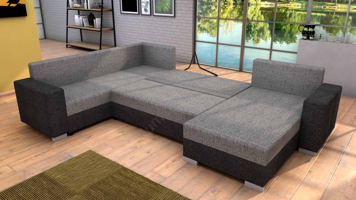 • Gestoffeerde universele U-vormige slaapbank YORK, grijs/zwart