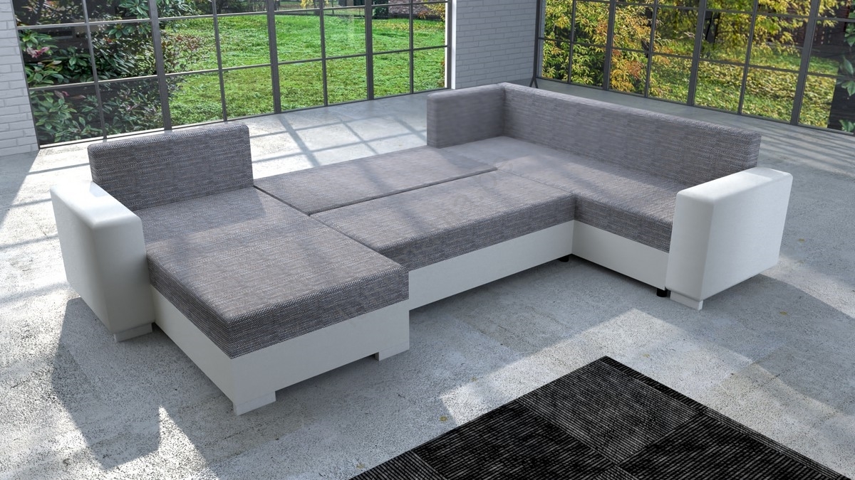• Gestoffeerde universele U-bank met slaapfunctie YORK wit/grijs