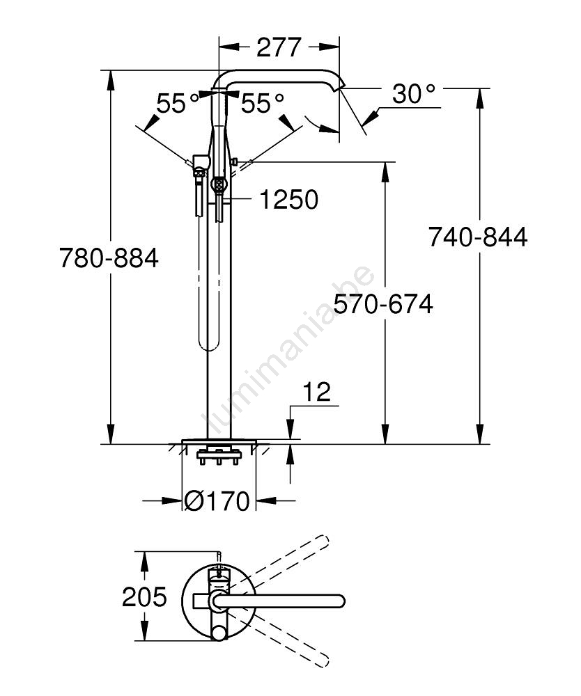 • Vrijstaande badmengkraan met hendel voor moderne badkamers.