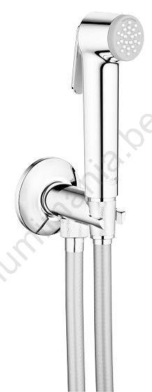 • De set bevat een zelfsluitende hoekstopkraan met geïntegreerde douchehouder.