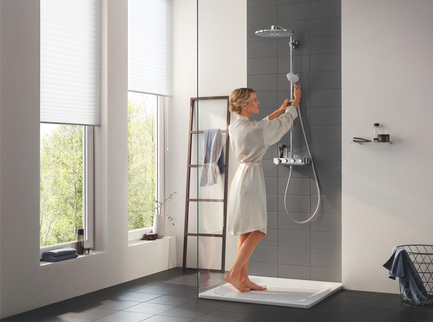 • De GROHE DreamSpray-technologie zorgt voor een gelijkmatige waterstroom uit alle sproeiers voor een optimale douche-ervaring.