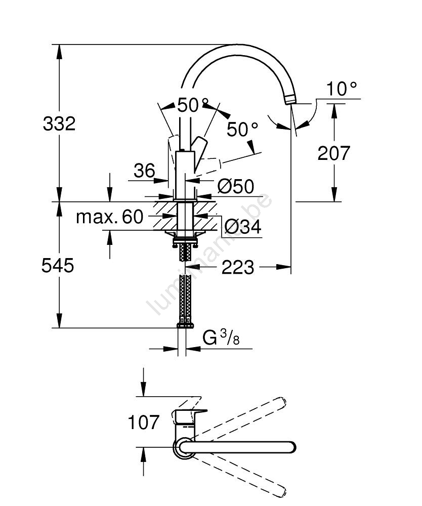 • Betrouwbare GROHE Long-Life keramische cartridge van 28 mm voor soepele waterregeling.