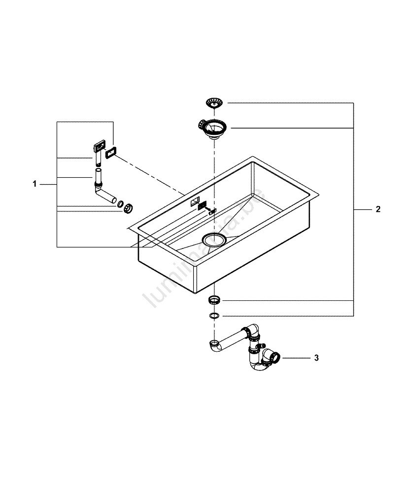 • Afvoergat Ø 3,5" (90 mm) met vuilzeef.