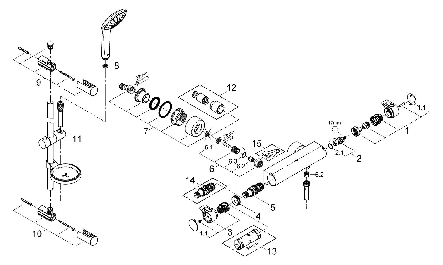 • Het GROHE QuickFix-systeem zorgt voor een snelle en probleemloze installatie van de douchestang.
