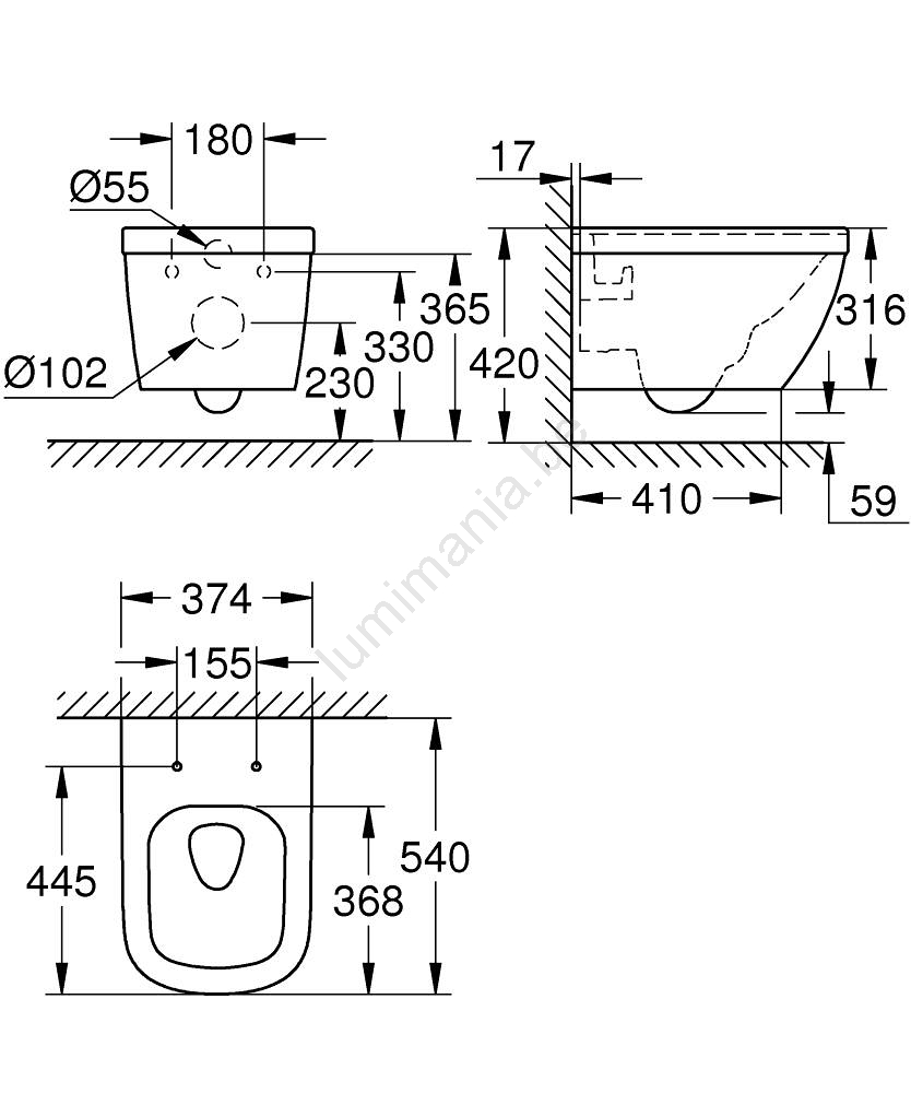 • Hangende montage maakt het reinigen van de vloer onder het toilet eenvoudig.