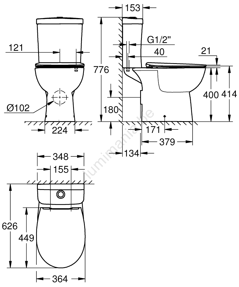 • Diepspoeling met een spoelvolume van 6/3 liter voor effectieve waterbesparing.