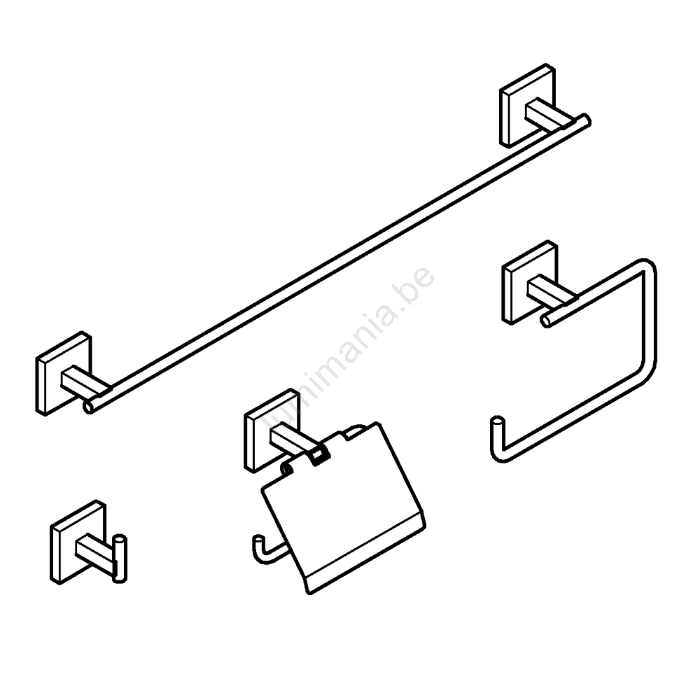 • Bevat handdoekrek voor badhanddoeken (lengte 558 mm), handdoekhouder, toiletrolhouder met afdekking en haak voor badjas.