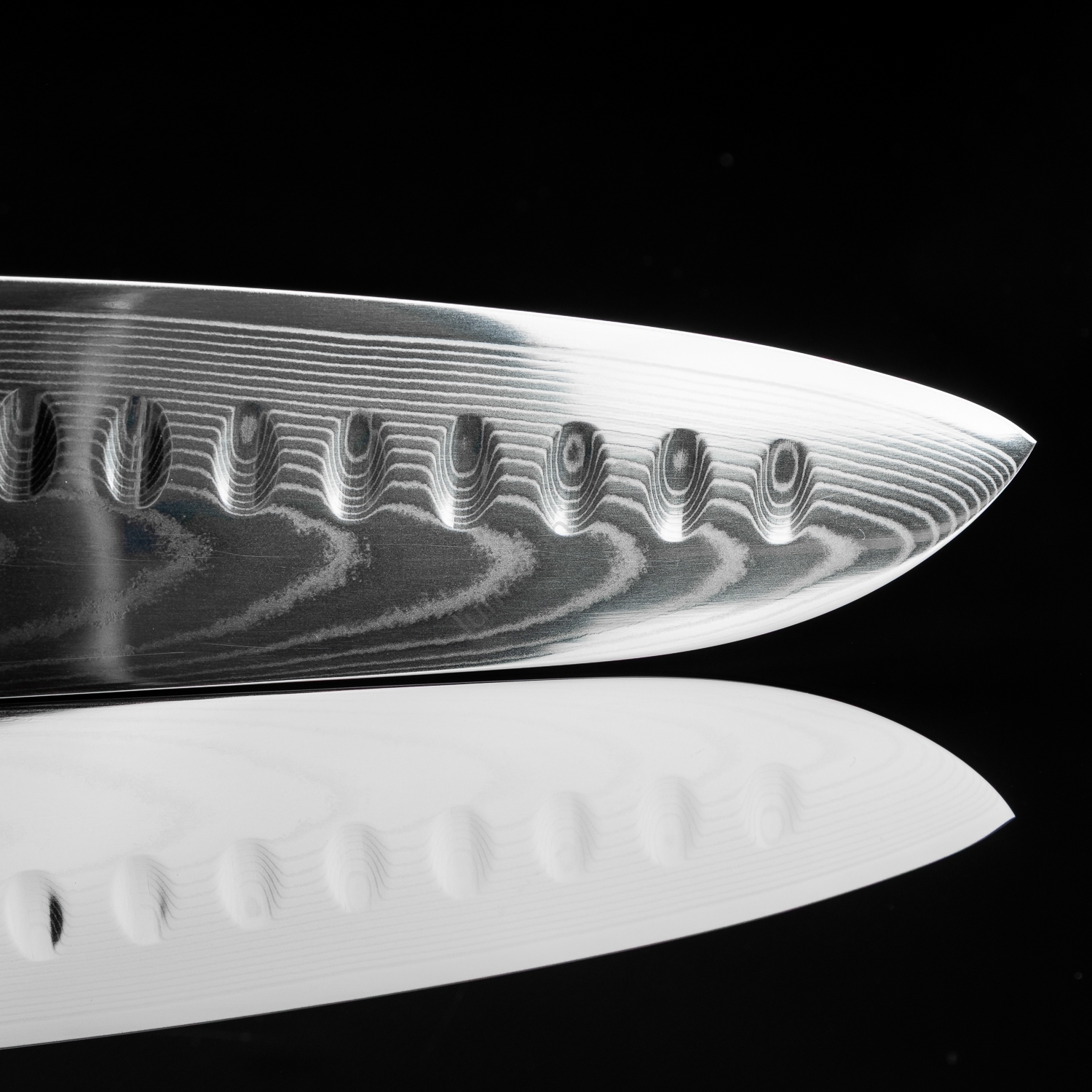 • Het Japanse Santoku-mes van Gudaro biedt de perfecte balans tussen traditioneel vakmanschap en moderne afwerking.