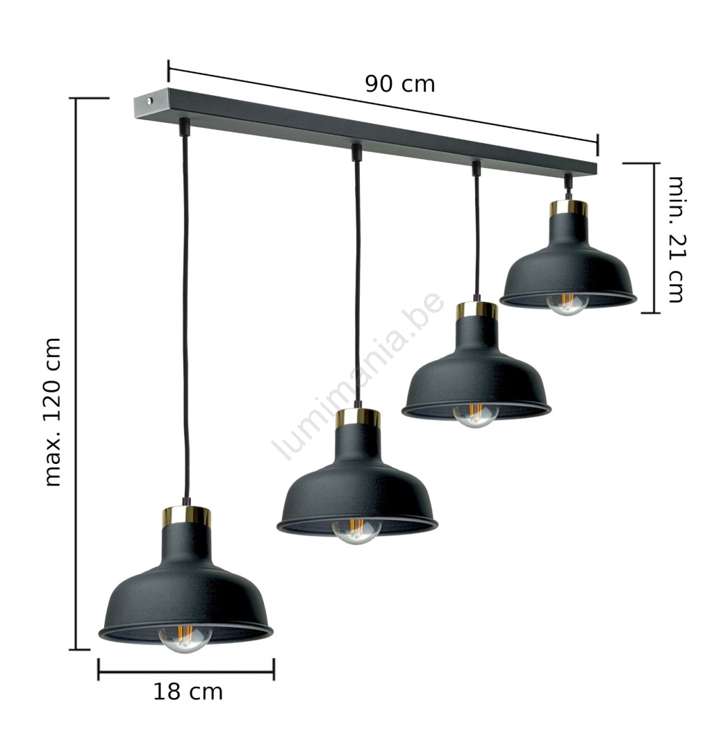 Hanglamp aan een koord HEBE 4xE27/60W/230V zwart kenmerkt een mooi en functioneel ontwerp.  Voor het licht is een lamp met E27 fitting geschikt. Hier kunt u andere lampen tegen voordelige prijzen kopen. U heeft een interessante aanwinst voor uw woning.