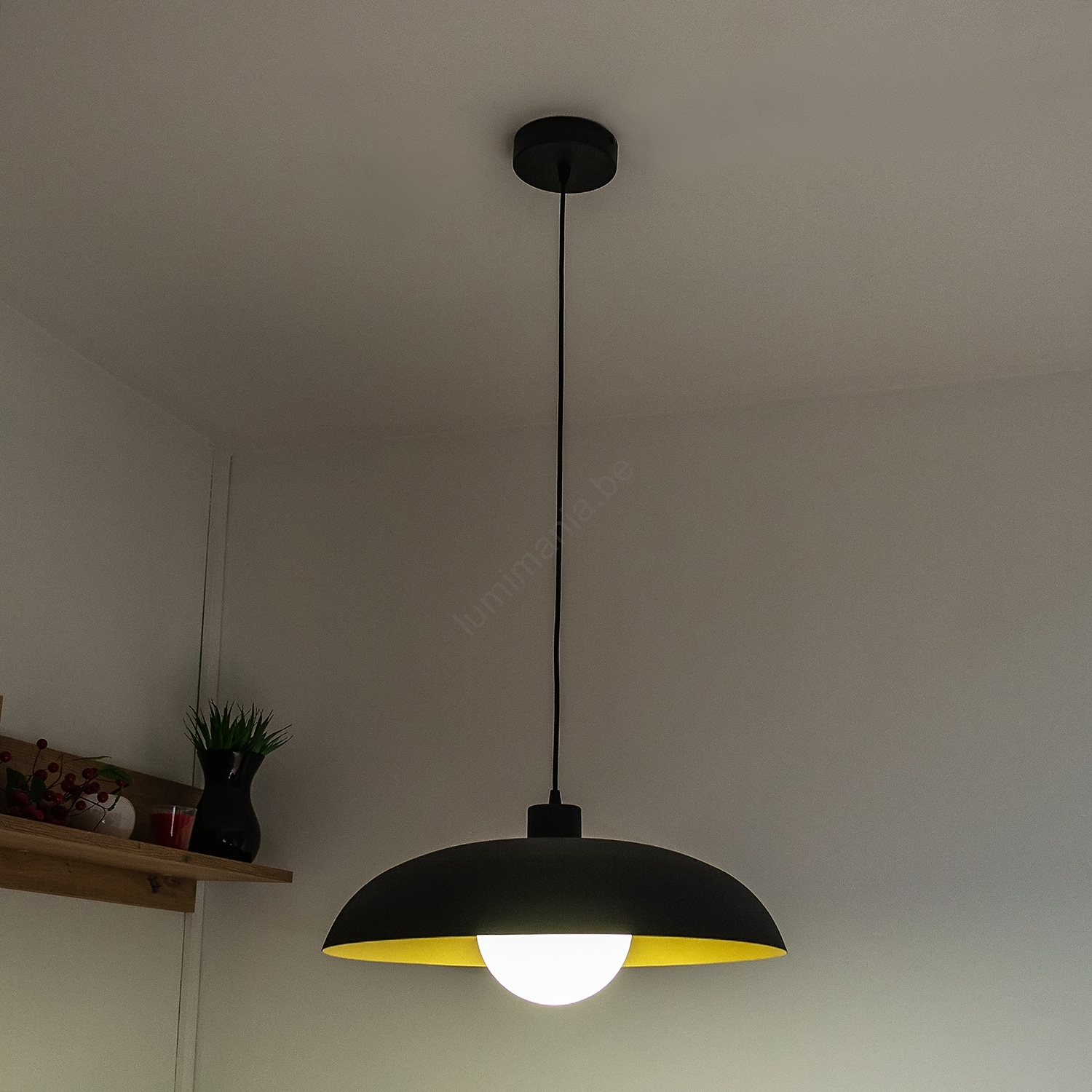 Hanglamp aan kabel ECLIPSE 1xE27/15W/230V zwart/goud kenmerkt een mooi en functioneel ontwerp.  Voor het licht is een lamp met E27 fitting geschikt. Hier kunt u andere lampen tegen voordelige prijzen kopen. U heeft een interessante aanwinst voor uw woning.