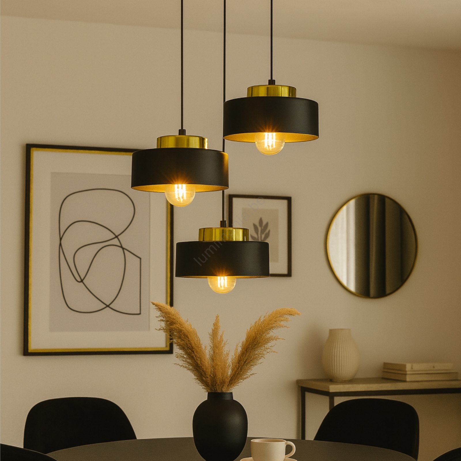 Hanglamp aan kabel IGNIA 3xE27/60W/230V zwart kenmerkt een mooi en functioneel ontwerp.  Voor het licht is een lamp met E27 fitting geschikt. Hier kunt u andere lampen tegen voordelige prijzen kopen. U heeft een interessante aanwinst voor uw woning.