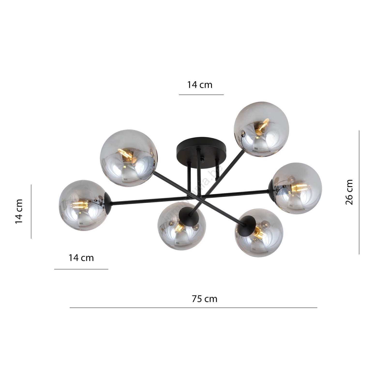 Hanglamp met vaste pendel ROMA 6xE14/10W/230V zwart/gerookt kenmerkt een mooi en functioneel ontwerp.  Voor het licht is een lamp met E14 fitting geschikt. Hier kunt u andere lampen tegen voordelige prijzen kopen. U heeft een interessante aanwinst voor uw woning.