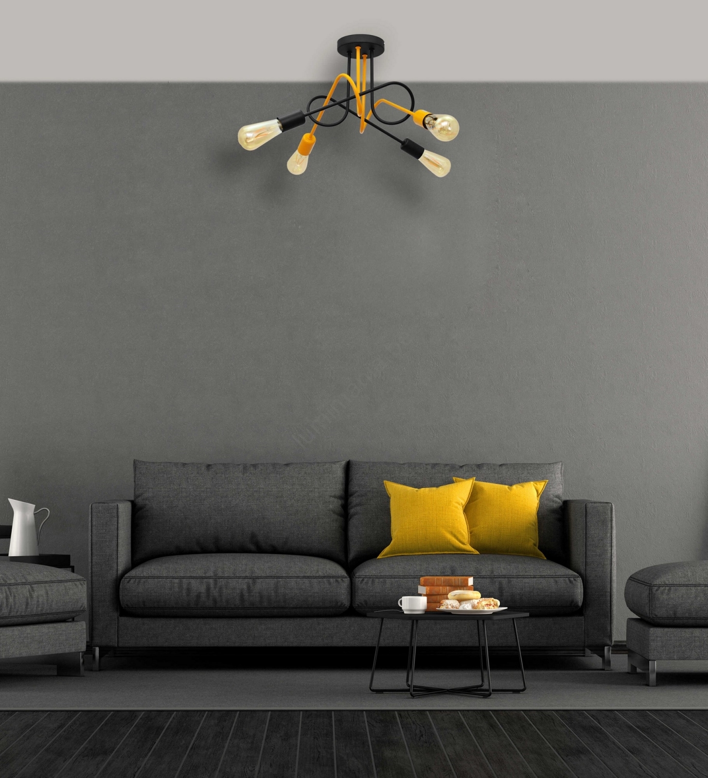 • Hanglamp voor Oppervlak Montage OXFORD 4xE27/15W/230V zwart/geel