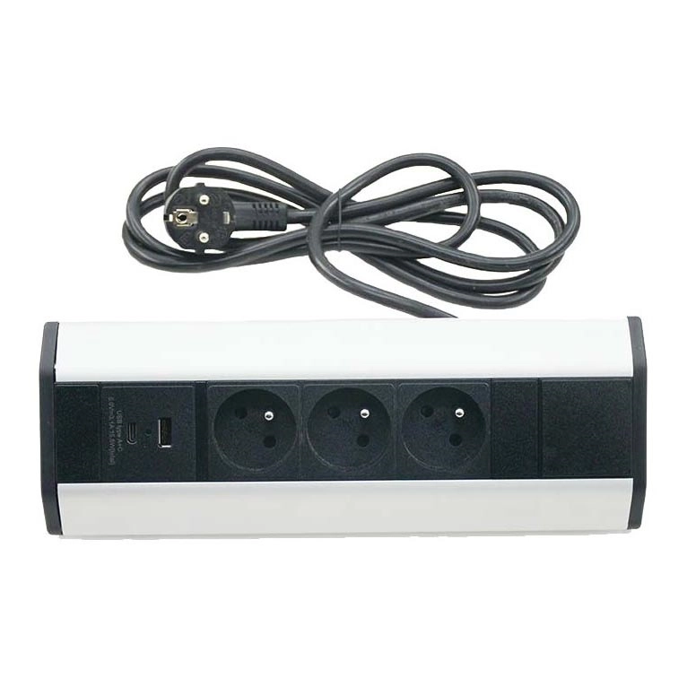 Hoek contactdoosrail 3x 230V + USB-A 3,1A + USB-C 15,5W 230V