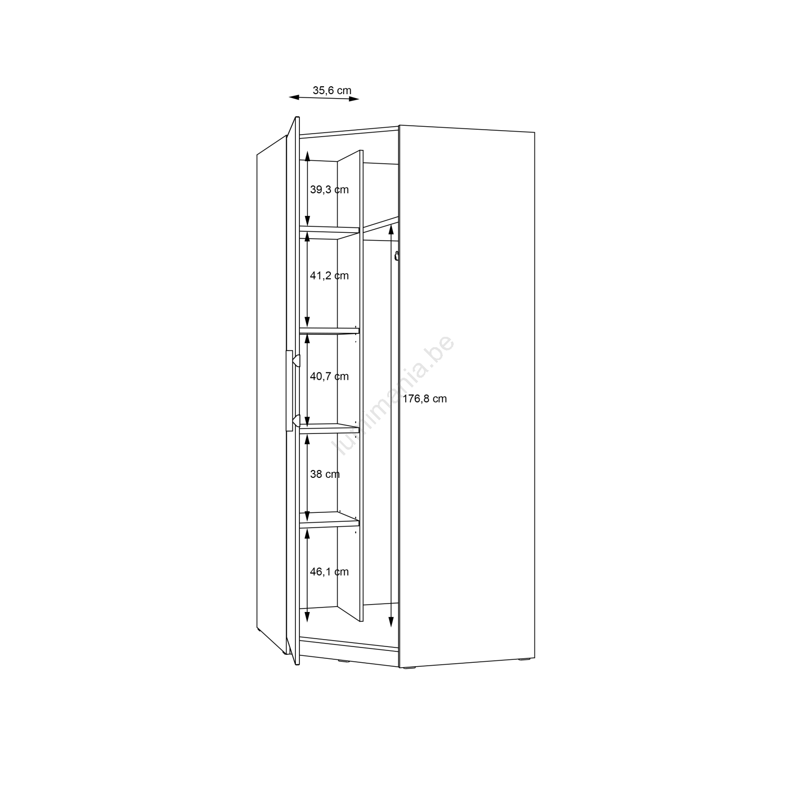 • De kast is uitgerust met een kledingstang, vakken en ruime opbergruimte voor uw kleding, tassen en seizoensgebonden spullen.