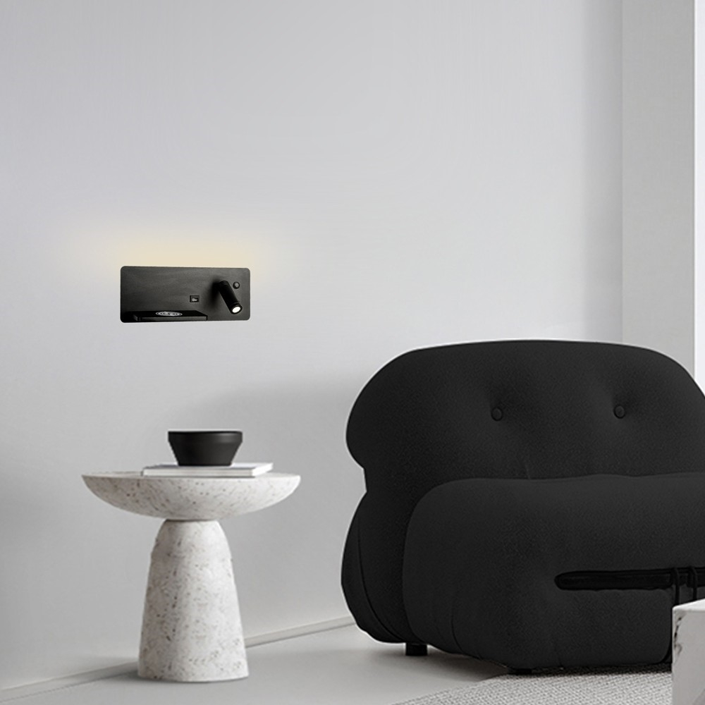 • Immax 08288L - LED Wandspot met plank, USB-poort en draadloos opladen Be PREPARE LED/3W/230V + LED/3W zwart