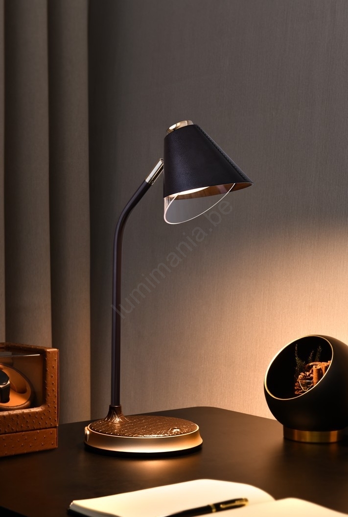 • LED Dimbare bureaulamp met draadloos opladen FINCH LED/9W/12/230V bruin/goud