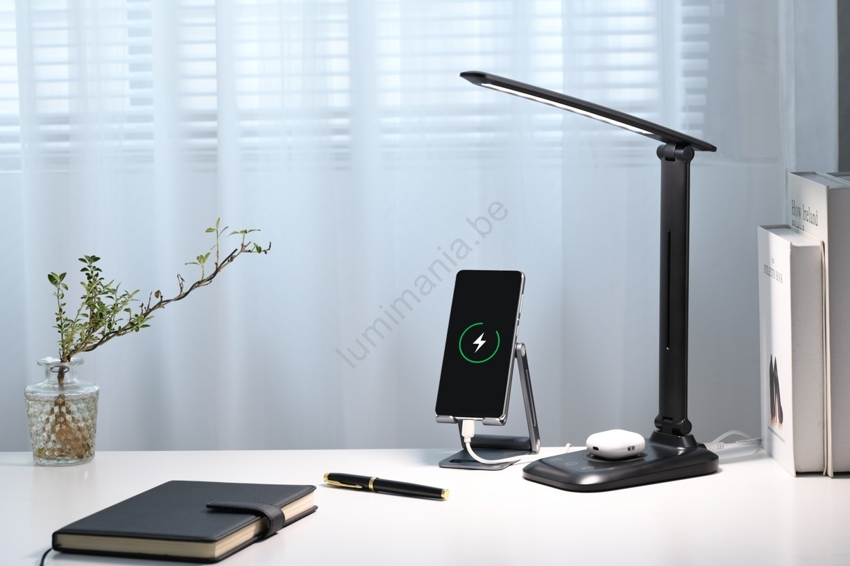 • LED dimbare tafellamp met draadloos QI-opladen en USB LUMI LED/7W/230V zwart