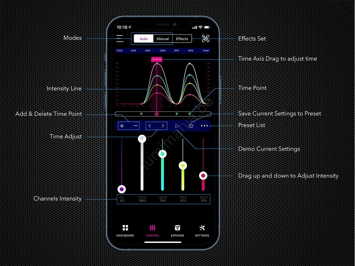 • Dankzij de moderne WRGB chip, zorgt de verlichting voor een compleet kleur spectrum dat ideaal is voor planten, vissen en decoraties in uw aquarium.