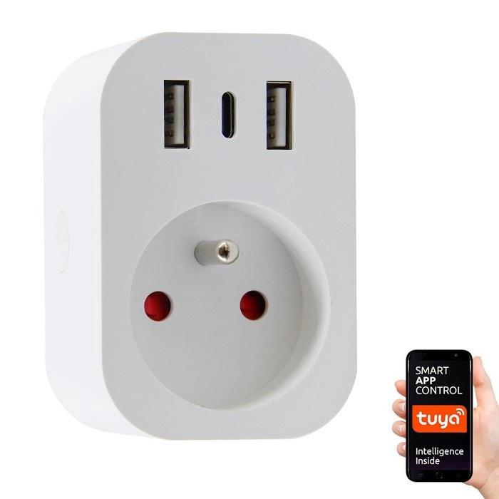 Immax NEO 07772L - Slimme stekkerdoos 16A/230V + 2xUSB+1xUSB C Wi-Fi Tuya