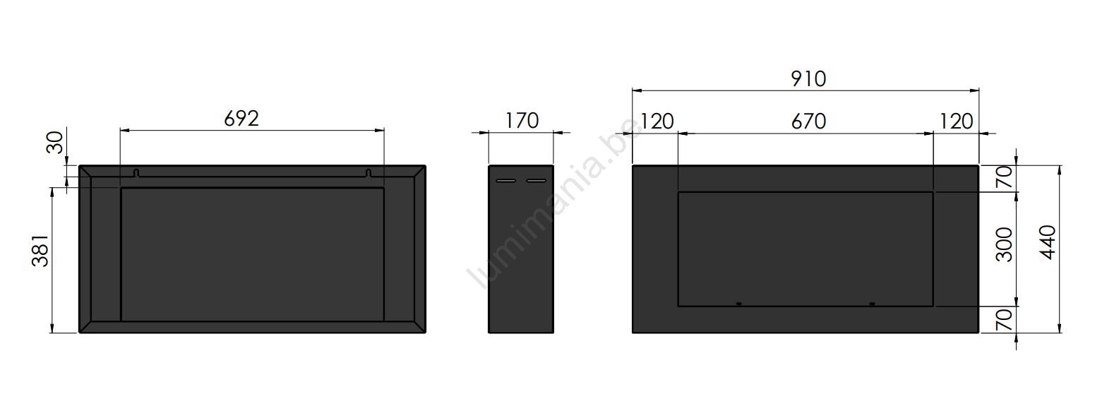 • Afmetingen van de haard: 44 x 91 x 17 cm.
