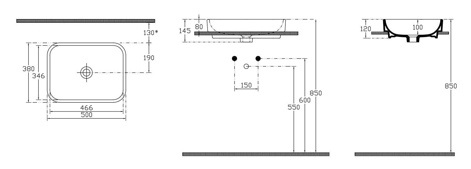 • U kunt hem aan de wand ophangen, op het werkblad plaatsen of in het werkblad inbouwen.