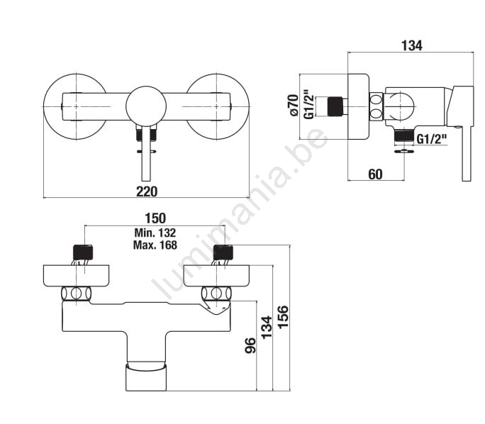 • Eenhendel douchekraan geschikt voor hoge druk.