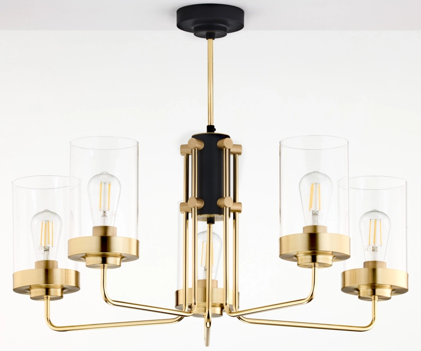 Jupiter 2088 - Kroonluchter met stang RAMIREZ 5xE27/15W/230V goud/zwart