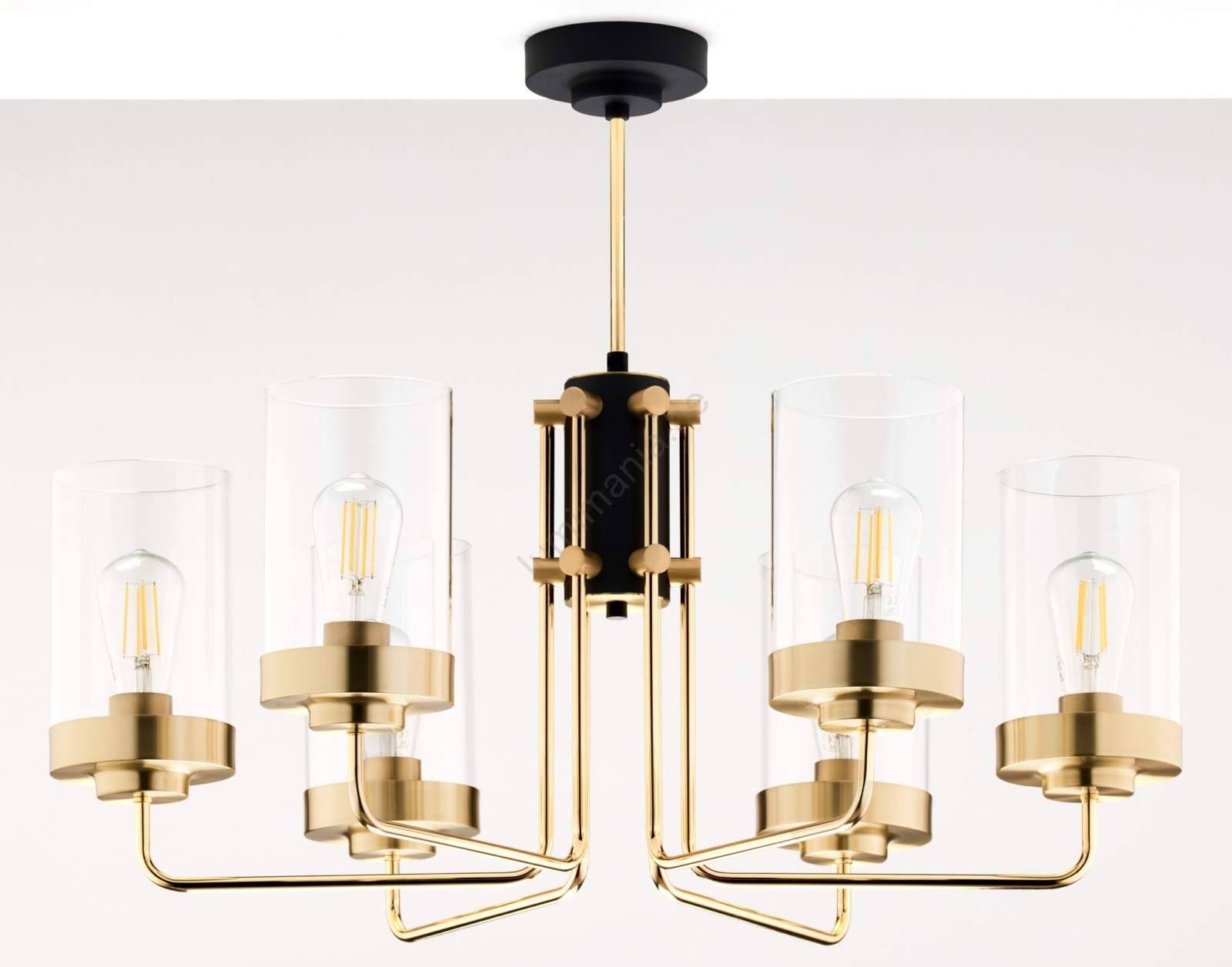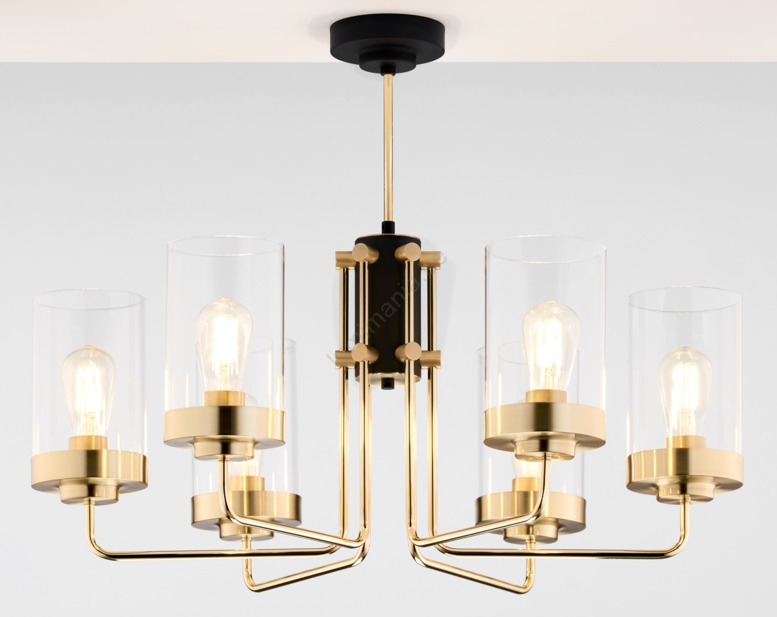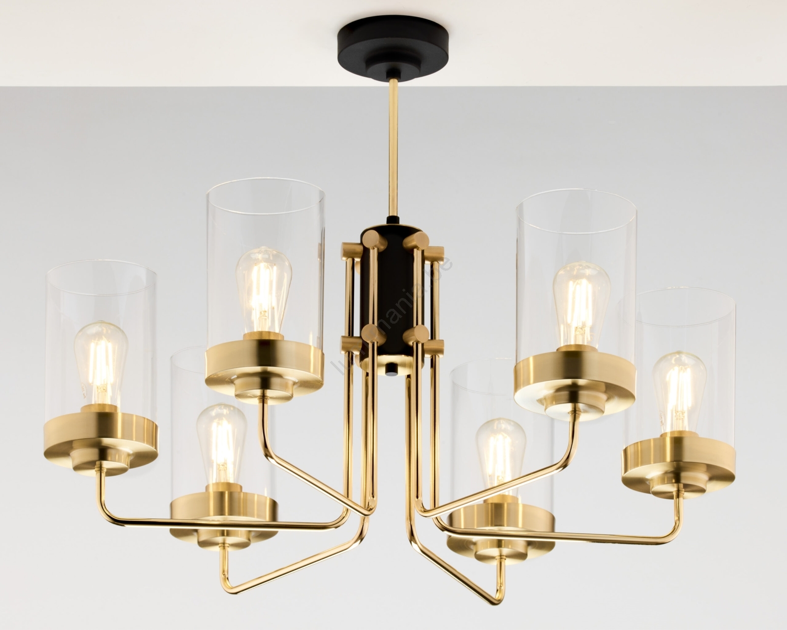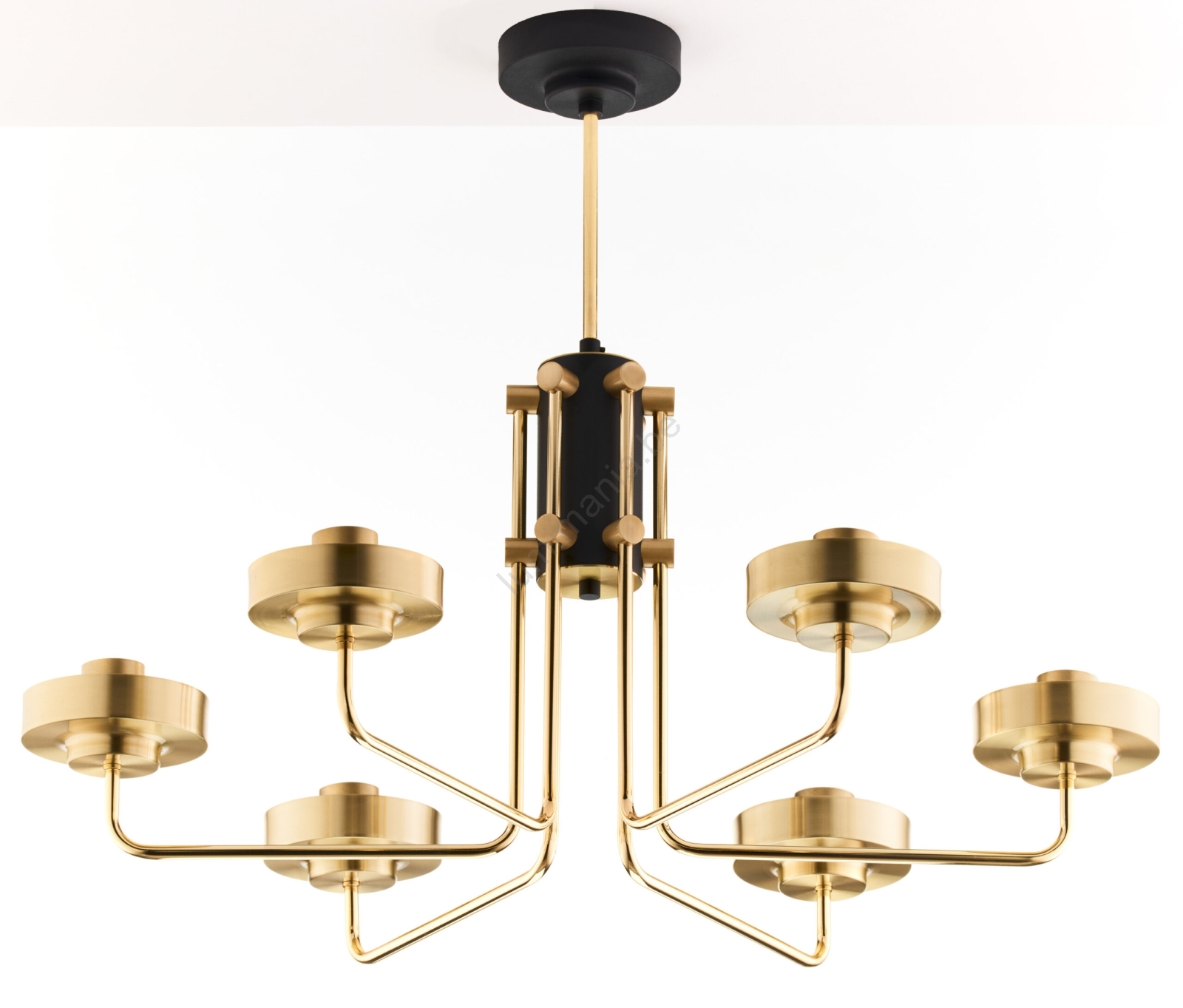 Jupiter 2089 - Kroonluchter met stang RAMIREZ 6xE27/15W/230V goud/zwart kenmerkt een mooi en functioneel ontwerp.  Voor het licht is een lamp met E27 fitting geschikt. Hier kunt u andere lampen tegen voordelige prijzen kopen. U heeft een interessante aanwinst voor uw woning.